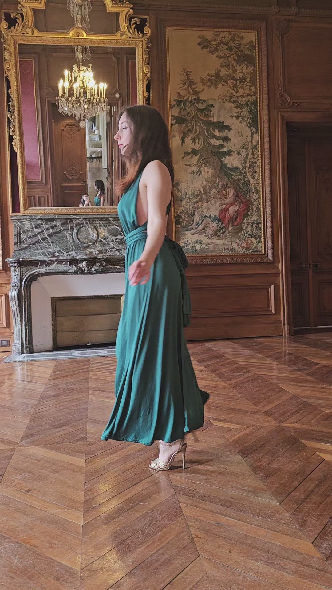 La robe Zoé se distingue par sa polyvalence et son élégance discrète. Sa teinte verte raffinée et sa coupe modulable en font un modèle adaptable à toutes les morphologies, offrant de nombreuses possibilités de nouage et d’ajustement pour créer différentes silhouettes selon l’occasion.